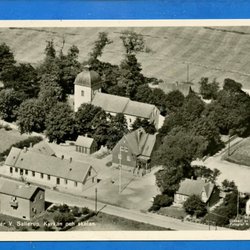 Flygfoto över V. Sallerup Kyrkan och skolan