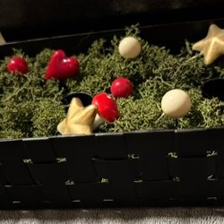 Jultomte med julgran och korg