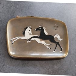 Äldre Dekorativt fat / väggprydnad med HÄSTAR, mässing