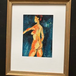 Akryl/akvarellmålning- Figurstudie/aktstudie naken modell kvinna