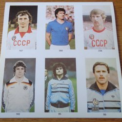 Co-Op Fotbollskort VM Spanien Espana 1982 oklippt ark x 6 kort, Michel Platini
