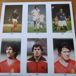 Co-Op Fotbollskort VM Spanien Espana 1982 oklippt ark x 6 kort, Pat Jennings