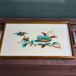 Serveringsbricka i plåt med fint blommönster.