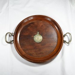 Träbricka med metallhandtag. Retro.