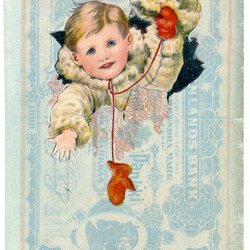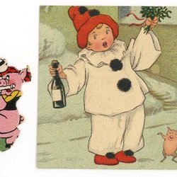 Äldre Julkort med pojke o gris i relief tryck
