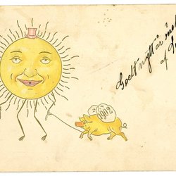 Äldre vykort relief tryck Sol gubbe går in de nya året 1902 med gris Års vykort