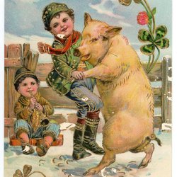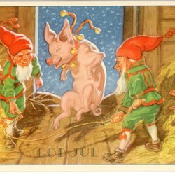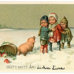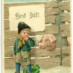 Gott Nytt År Kort i något skadat skick se bild Pojke dansar med gris