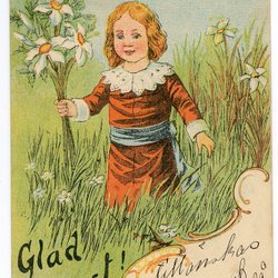 Äldre Vykort osign Trn med barn i blomster äng Glad Pingst