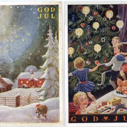 2 olika sign Curt Nyström Julkort med tomtar o grisar