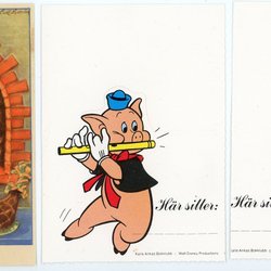 ett mindre Sign Curt Nyström vykort och Disneymotiv placeringskort med grisar