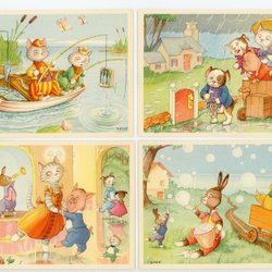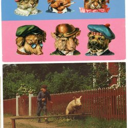 4 olika sign vykort med olika djur hund katt gris m.m