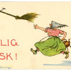 Gammalt Påskkort Sign Hildur Söderberg med påsk kärring som jagar kvasten