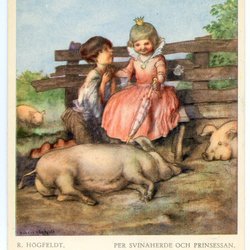 Vykort Sign R.Högfeldt med prinsessa o svinaherde med grisar