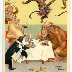 Sign Vykort Apa med gris och andra djur