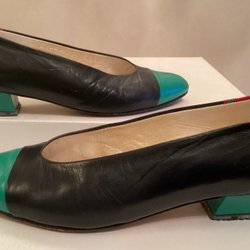 Damskor pumps med låg klack i rött, svart o grönt skinn från GLACONDA. 37