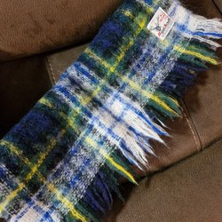 Handacraft blå/grön/vit/gul halsduk ,Ull ,Vintage