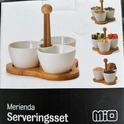 Mio Merienda Serveringsset med 3 Porslinsskålar och Bambustativ