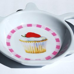 Tepåsfat Cupcake Jordgubbe Fat till tepåse i Melamin