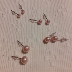 Fyra par studs med ljusrosa pärlor