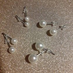 Fyra par studs/vita pärlor i olika storlekar