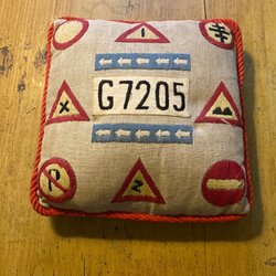 Dekorativ kudde med trafikmärken