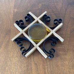 Underlägg i trä och metall med glas