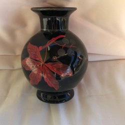 Svart Vas med Rött Löv/ art Devi/(Åfors)
