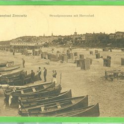 Ostseebad Zinnowitz. Strandpanorama mit Herrenbad