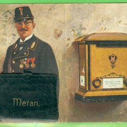 Meran. Brevbärare med remsa i väskan.