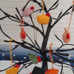 8 st virkade hönor/kycklingar i olika färger till riset.
