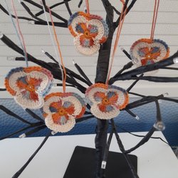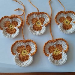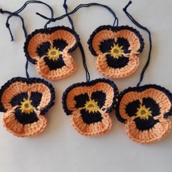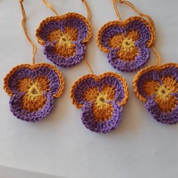 5 virkade penséer påskpynt/påskris