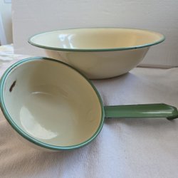 Kockums tvättfat och vattenskopa i emalj