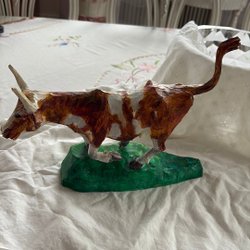 Träskulptur av ko signerad WS 1985 Werner Sjöberg Träsnidare / skulptör Norrbo