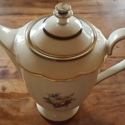 Vacker äldre Porslinkanna med lock med blommönster från Königl.pr.Teffau