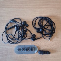 Två par hörlurar med sladd AKG. Extra öronkuddar