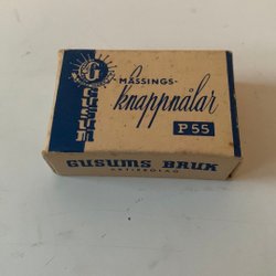 Gammal ask Mässingsknappnålar P55 Gusum