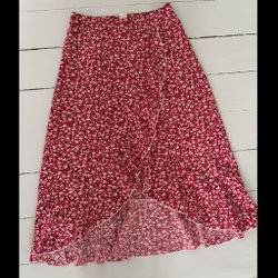 Röd blommig lång kjol stl S