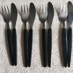 Bestick gafflar, knivar, gaffel, kniv, rostfritt, svart skaft