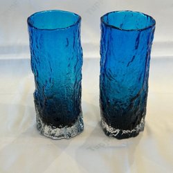 Blå Glas Vasar Bark - Vintage - 2st