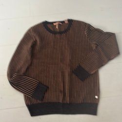 Hösttröja i brunt/svart med guldtrådar