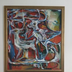 STOR SAMISK OLJEMÅLNING MED RENAR AV LARS J:SON NUTTI ,
