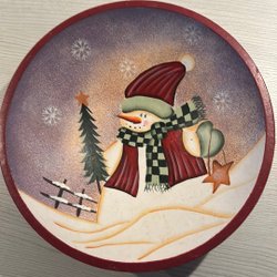 Målad träskål med Snögubbe