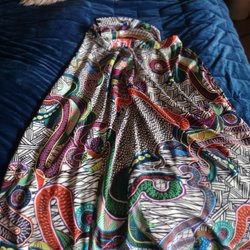 Ny otroligt vacker flerfärgad klänning med öppen dekoltage storlek M