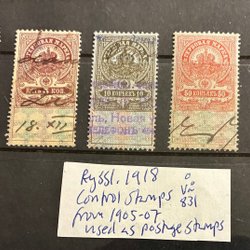 Ryssland 1918 control stamps used as postal stamps