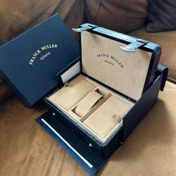 Franck Muller klockbox i svart krokodilmönstrat läder