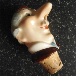 Vintage Droppkork / Vinkork Huvud i porslin
