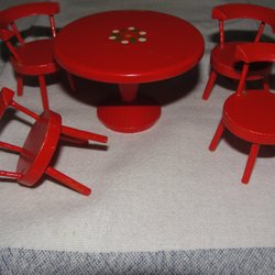 Rött Dockskåpsmöblemang - Bord med Stolar Till dockskåp