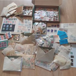 Blandlåda med frimärken album