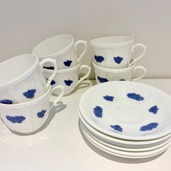 BLÅ BLOM~Gustavsberg~6 kaffekoppar med fat