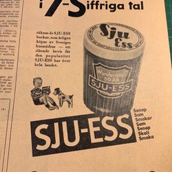 Retro-annons ”SJU-ESS: Senap Som Smakar Som Senap Skall Smaka” från 1948